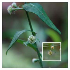 8/25 地味さランキングでは上位に食い込むと思われる「シュウブンソウ」😅 舌状花はあるんだけど全くもって目につかないし、色合いがほとんど緑ということで、まあ目立ちません。 茎の伸びが途中で止まって、そこから四方に枝を伸ばすこの感じは、ヤブタバコにそっくりです😊