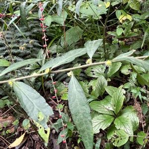 「シュウブンソウ(秋文草)」 茎は途中から横に伸び、大きな葉っぱとちっちゃな花の姿が独特だと思う。 本州(宮城県以南)から沖縄の山地に生える。 2022.10.15撮影