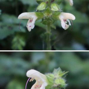 キバナアキギリ シソ科アキギリ属 本州~九州 木陰に生える 淡黃色の唇形花を着ける、上唇に♂♀蕊が隠れている、自家受粉をしない仕組み。花に爪楊枝で仕掛けをした、上唇から蕊が出てきた、これで受粉完了、左picは何回もやったので戻ららくなった。手妻は種明ししたら面白く無い。御自分でどうぞ。 ×よって件のごとし×