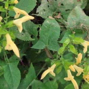 🌱キバナアキギリ🌱 …………………黄花秋桐 お花の形 とっても不思議👀 草木が生い茂る中🌿 此処だけ パァーっと明るかった様に感じました❕ 10月13日 里山にて📱