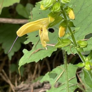 🌿キバナアキギリ🌿黄花秋桐 シソ科アキギリ属の多年草 昨日久しぶりに雑木林に出かけたら、キバナアキギリが咲き始めでいました💛💛💛 この子に会うのは久しぶりです。 この優しい黄色はとても秋らしい色ですね〜 しかも紫色のしべ💜 オシャレだわ💕 2025.9.23撮影