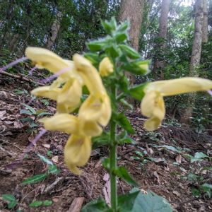 おはようございます⛅️ ハイキング中 道脇のお花 キバナアキギリがまとまって咲いていました💛💚💚 シソ科アキギリ属 多年草