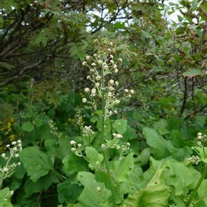 昨年、市内の公園で1枚目の姿で出会ったノブキ。 今年は花を見に行こうと思いながら行けずにいたのですが5日のお出かけ先で出会うことが出来ました。 たくさん撮ったのにボケたのばっかり2.3枚目何とかわかるかな? 中心に両性花、周りに雌花が咲いて雌花だけが結実して1枚目のような姿になるそうです。 よく見ると白い小さな花が集まってかわいいですね♡ ノブキ(野蕗) キク科ノブキ属 多年草 湿った木陰で咲いていました♪