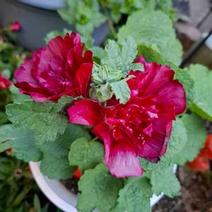 こんばんは😃🌃 昨日の🌊…大丈夫でしたでしょうか~ ☝️…✂️低いタチアオイ~ゼラニウム~ブルースター~ホウズキ~コラーユジュレ 「幼き日 庭に咲いてた 臭い花 母の思い出 私の庭にも」~😅 今日もお疲れ様でした~ (⌒0⌒)/~~