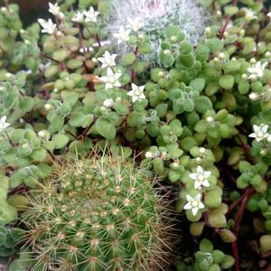「セダムの花」 UPップ(ノ)•ω•(ヾ) 多肉寄せ植えが爆繁殖している中に、セダムの花が咲いていました。 白い蕾がプチプチと沢山ついていました。 「訂正2021年2月11日 一見セダム属にも思えますが、クラッスラ属でした。 ブロウメアナの花になります。」