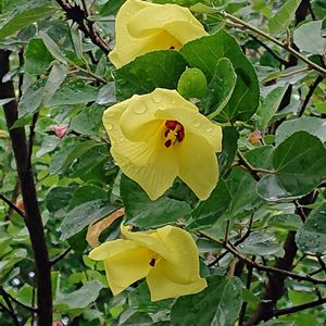 オオハマボウの黄色い花が開花中!矮性種なので小さな樹形で開花します!
