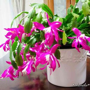 おはようございます デンマークカクタス(クリスマスカクタス、シャコバサボテン) クリスマスの時期に咲くので別名クリスマスカクタスなんだ 反り返った花弁と長い雄しべが素敵なシャコバサボテンです 花言葉*ひとときの美 湯上がりのわたしどう? 巻いたバスタオルを取れ? それはダメ(灬º 艸º灬) 想像してくださ〜い ふふふ( ^ิ艸^ิ゚) 冷えたビール飲も飲も 今日わたし酔っちゃうぞ(﹡ˆ﹀ˆ﹡)♡