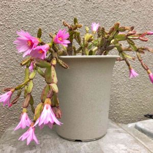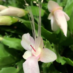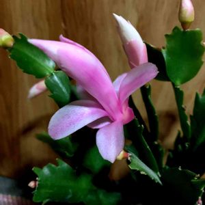 デンマークカクタス 別名『シャコバサボテン』と呼ばれるサボテンの仲間⇒サボテン科スクルンベルゲラ属 トゲのような茎が連なって伸びる様子が海の「シャコ」に見えることから クリスマスあたりに咲くので『クリスマスカクタス』とも