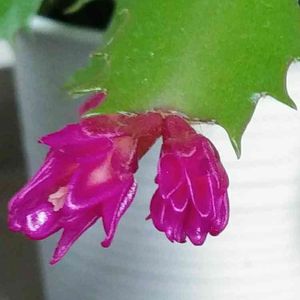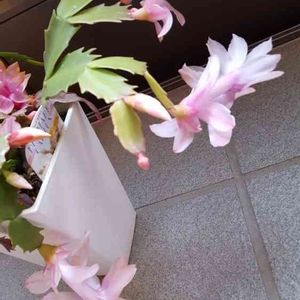 今年の春先にホームセンターで、捨て値価格で売られてたデンマークカクタス。 可哀想精神で連れてきて、植え替えして外に放置(ごめん💦)してたのに… こんなに可愛い花を咲かせてくれました😄 花が下向きなんだけど、合ってるのかな?