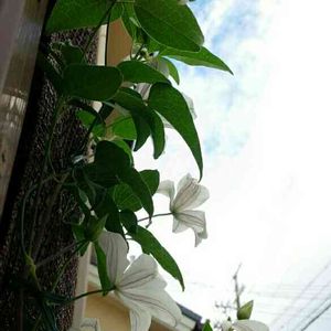 我が家の5番目の クレマチス フルディーン 清楚で可愛らしい花姿です