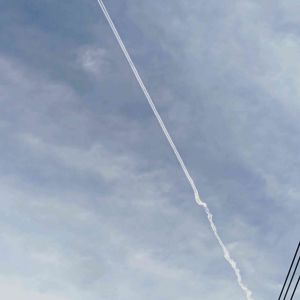 飛行機雲 酷暑が続いているけど、空は高く秋の気配の雲。 飛行機雲が描かれて。 先には、飛行機✈が目視できた。 2023/0821 pm5:00