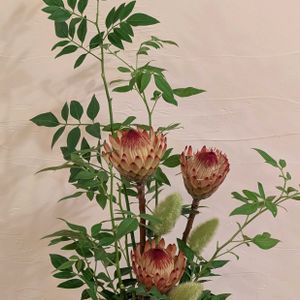 8月1日全国的に 猛暑🌞🥵〜 お暑うございます🙇 🍉🍉🍧🍧🍧🍧🍧 をどうぞお召し上がり下さいませ 今日の投稿は6月9日 お試し1回目の作品です 本格的に初めてのレッスン緊張しまくり 😖😵💫〜 No1 …プロテア ソケイ アワ 終了後このままそーっと気おつけて3分程の自宅迄持ち帰りエントランスに😮💨🤩 落とさ無くて良かった No2…静岡名産🍈 静岡高級マスクメロン 🍈アローマメロン🍈 果物の王様 甘く豊潤なお味と香り 美しく張りめぐらされた網目です 静岡県西部地域は温暖な気候と、日照時間が長く🌞の光が沢山当たることで高級🍈が作られております 食べ頃迄もう少し 友人からお礼品 まさかまさかの静岡 高級🍈をご紹介できるとは🤩🙇 今月も宜しくお願い致します 花友さん達のご投稿を👀👀じっくり拝見しているので、ご挨拶が 遅れて🙏又深夜にお邪魔する時もございますがお許し下さいね🤗 樹里 🌿🌻🐝🌿🌻🌿🌻🐝🌿🌻