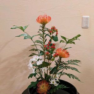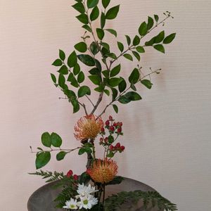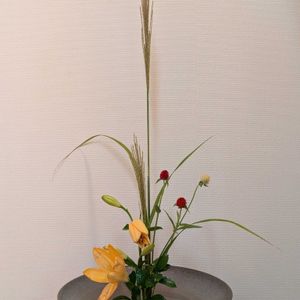 😄こんにちは〜 今日は1週間ぶりの🌞 秋晴で外は26℃👕🩳 です10月中旬迄26℃ 1週間☔等で一気に16℃今日26℃ まるで🎢🎢コースターだよね 🚗10分、県立子供病院の周りは🌾🌾でいっぱいです 10日のお稽古の時の黄緑色ユリがやっと オレンジに色ずきましたので活けてみました No1…ススキ ユリ ⚪🔴 センニチコウ 🌿 ルスカス ユリが少し開きいい感じ〜😘ふふふ🎶🎶 🤦🏻2回生け直ししたら 花びらが1枚ほらほら 👇🏻下がってしまい花粉迄付いてしまった😖😫……😅👍🏻します 10.16🤳🏻にて No2…こんな感じで 生けました🫲🏻☺️ No3…壮華流日舞 チャリティー公演 10月25日土曜日 町内の友人が名取で 一番出演👏🏻👏🏻 No4…初めて本格的な日舞を堪能 お席も2列の真ん中 👀👀👀 16名の出演者殆ど高齢最高は88才のマダム😱 家元も皆高齢化しているので、許されるまでは、チャリティー公演 社会に少しでも貢献したいです。とご挨拶 体感がしっかりしない 🦵🏻🦶🏻が振れるよね 重いカツラに裾迄長〜い👘、🪭を持ち舞う姿は、皆様芸事がお好きなんだな〜🤩🥰👏🏻👏🏻ブラボーブラボー🥳 友人のマダム、カツラ姿初めて拝見 普段のお顔薄化粧で本当にお綺麗な品のある方なんですよ🤩 🙇🏻 樹里