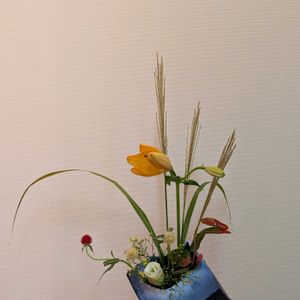 😄〜〜〜わ 昨日、今日と風も無く 🌞気持の良い秋晴で〜す 昨日の投稿の続きでございます🙇🏻 🍂🍁🍂🍁🌿👘🫳🏻🫴🏻 No1…ススキ ユリ センニチコウ トルコキキョウ ヒペリカムの🍂 サイコロ型の花器に一目惚れ😍💘 花器の底が白色なので 🟦に塗り替えました 中々😖〜ので剣山使用スッキリ生けました 😁 10.16🤳🏻にて No2〜3…祝いづくし 🪭と🔔を持っての踊り、前日は本番通し稽古、本番いよいよ1部 1番目、凄い集中力🔥🤩😍🥳👏🏻👏🏻 No4…1部踊り& 特別出演…古典落語 三遊亭鳳月さん 2部踊り3時間半公演 細川たかしさん 美空ひばりさん他 民謡等を家元振付の踊り、綺羅びやかな👘👘👘🤩🤩👏🏻〜 出演者方々のお見送りにて 友人の浩子さんです🫴🏻 初めての日舞鑑賞にて 🙇🏻 樹里