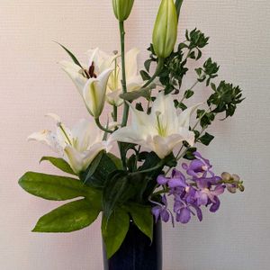 昨日はマンション花壇大、小の草取り、アイビーの枯れ葉の処理 腰が😖〜 No1…🤍オルレヤ 以前花友さんより苗を頂きこぼれ種より数カ所に咲く 今回初めて花材に 💜シラン 5年前3株町内の方から頂きやっと15株迄に🤩🥰今年初めて 花材に 🎩型の花器にて No2…オルレヤ No3…シラン No4…セッコク 去年磐田市行興寺の 藤の花を見学後 人気の無い境内の隅で セッコク…1番小さな素焼きの鉢が10個くらいかな🤔〜 🌱てっきりご自由にどうぞ🌱 覗いて👀見た😁 あちゃ〜🤦🏻 🤠販売していた 甘〜い香りが私を誘惑 😍💞購入 ベランダの外行 たくましく😱🤩🤩🤩 育ち花を咲かしてくれました🙏🏻 今回お披露目で〜す 🌱🪴🌱🪴🌱🪴🌱 おしまい🤗樹里