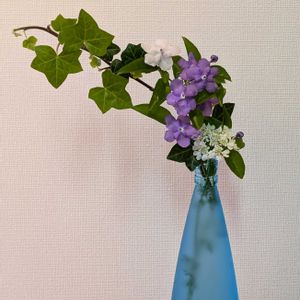 静岡市☔中々🟦🌞は珍しくなってしまって 😞 3年前に私の好きな ニオイバンマツリを植え、しっかり一丁前に 今年は花盛り🤩🥰👍🏻 満開の時☔が…やはり 花びらが😖😣😮💨 少し✂️🥰🥰🥰甘〜い いい香り〜〜〜🎶🎵 5月2日に花壇撮影 ニオイバンマツリ 2作品本日は1作品投稿します No1…ニオイバンマツリ アイビー オルレア 3種マンション花壇のお花 花器😁😆焼酎の空き瓶 🌿涼しげな生け花🌿 No2…3年前に植えましたが今年は1m位迄に成長花数も多く初めて生け花に使用 No3…主人の健康サプリドリンク🤣🤣🤣焼酎。この瓶を👀時 🤩🎶ニオイバンマツリを生けよう➰ 🩵💚🖤益々健康ドリンク瓶が貯まってしまいます😆😁 No4…家の横の道路 歩道より 夕方🚶🏻♀️🚶🏻♀️🚶🏻♀️🚶🏻♀️🚶🏻♀️ コンクリートの🤏🏻の隙間より毎年3箇所 🩷🌿,サフランモドキ💜🌿スミレも 何箇所か、かたまり があるので余分な草取りをして見守っています。 では🤗 樹里 🎶🎶🚶🏻♀️🚶🏻♀️🚶🏻♀️🚶🏻♀️🚶🏻♀️🌿🌿 先日GS花友さんより 蔦繋がりより 学生時代の歌詞を 教えて頂いて歌ながら 🚶🏻♀️🚶🏻♀️🚶🏻♀️🤣🤣音痴