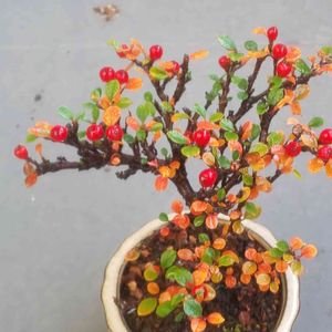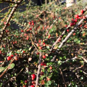 真っ赤な実をいっぱい付けた紅紫檀(ベニシダン)。寒さや暑さに強く、丈夫の為、初心者でも育てられるバラ科シャリントウ属の常緑小低木。盆栽ではかなり有名です。葉っぱより実を楽しむ、秋にピッタリな盆栽。PICは、地植えで垂れ下がった赤い実が、お見事でした。 漢字の「ダン」は、土へんではなく、木へんなので、ご注意下さいね。
