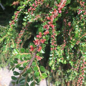 浜ヒサカキの植え込みの下、這うように、広がっていました。 コトネアスター? 紅紫檀? で、合ってますか? Googleの教えです。