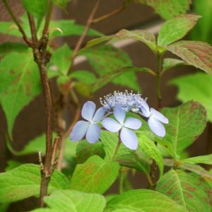 山紫陽花 1.剣咲 2.3.津江の渦巻 小さなカマキリ 隠れてます