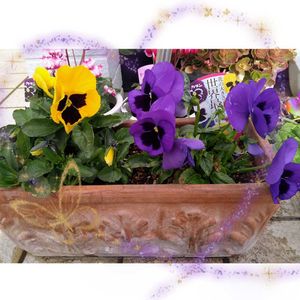 ボニータ☘️🧡🥰💜☘️モニター 11/16から3週間経過 鉢から溢れ出しそう☘️💛☘️💜☘️ にぎやかになってきましたよ 寒くなると花苗の根にダメージが無いように 根元補水🚿も家事をひと終えした10時過ぎにゆっくりになりますね 今日は家族が担当者🚿
