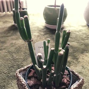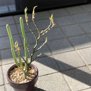 緑の不思議な棒。゚(゚^∀︎^゚)゚。 どうやら、夏🍉🐠🌻☀️大好きみたい❣️ 後ろの緑の鉢のが折れちゃったヤツ。 しっかり発根して、新芽も出てきた!!👍 本体、一番長いのは30cm越え〜🎶❣️ 冬はちょっと苦手。 フォロトシア グランディフローラム (ガガイモ科 フォロトシア属 マダガスカル原産 ) 知り合いが育てている ユーフォルビアのアフィラを見て 探していて見つけたヤツ。 違いが全く分からない😅🤣