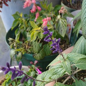 軒下ロードにて… サルビアのお花が3種類咲いていますꕤ*.゚ あやのサーモンピンクで可愛い💖です😊✨1鉢に2株入ってますღ 手前の紫色のお花は小振りなんですღ サルビアアンソニーバーカー 赤いお花 サルビアフェニックスルージュ 濃いめのピンク色です💖