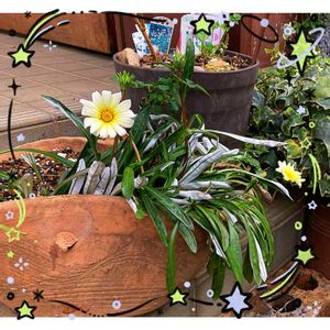 夏のお空へ🌠💫 シルバーリーフのガザニアさん 🌼🌿 ︎︎𓂃⟡.· あなたをお迎え出来なかったけど お庭のクリーム色のガザニアを おんなじキモチで植え付けました🥰 💛🥀 ミニバラも一緒だよ💞