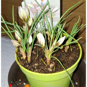 ❄️にも負けず 咲きました💛🤍 ①母 地植え②私 鉢植え クロッカス ③寄せ植え🤍伸びました ④種蒔きっ子ちゃん ⑤初❄️ 123さん🏷️種から育てる♡🏷️可愛い発芽♡ 🏷️球根から育てる♡🏷️コラージュして遊ぼ♡ 参加します(o^・^o)