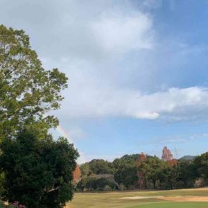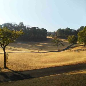 沖縄旅行。 ホテルのベランダから、となりのゴルフ場が見えます。松の木がいい感じです🌲