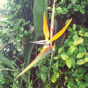 お散歩中 突然顔を出した 極楽鳥に 驚きました! 大きい お口が 空いていたので✨
