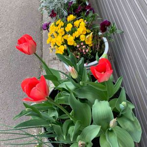 昨年の我が家の店前の寄せ植え達 チューリップ🌷 真っ赤な火曜日に参加します🎶