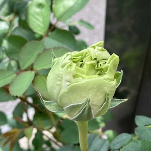 バラポルトブルー咲きました♪蕾は黄緑、膨らんで白、開花はブルーグレー色の変化が楽しめます。