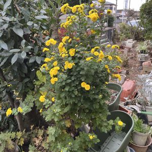 お隣さんのお家の菊 黄色(小菊)と万両が素敵だったので、撮影しました😆👍🌼🌼🍒🍒 可愛らしいデス🥰💕🌼🍒