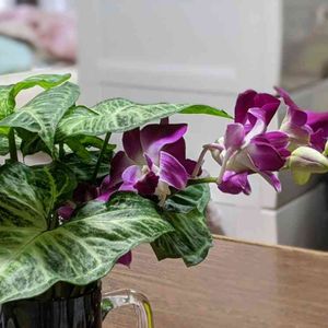 剪定したシンゴニウムにあわせ、デンファレを買いました。なかなかきれいです。が、花瓶にいけたシンゴニウム、全く枯れる気配がなく、冬の保管スペース問題が浮上中。。