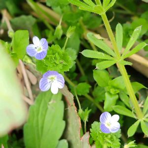 "水曜日は水色" 散策路沿い。 オオバコ科の可愛い野草さんたち。 ①②マツバウンラン ③④ツタバウンラン 📷️ 2025.4.6