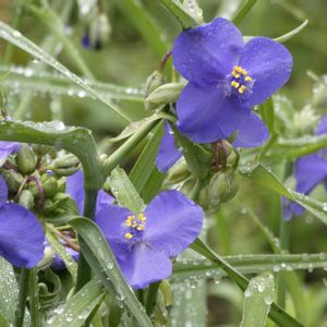 「ムラサキツユクサ」 早朝より強い雨☔ですが、庭先のお花たちは雨粒を弾きながら咲いています。 このpic,で、キリ番を迎えますが、お祝いコメ等は軽くスルーでお願い致します🙇 🏷水滴の水曜日 🏷花咲く乙女たち♡