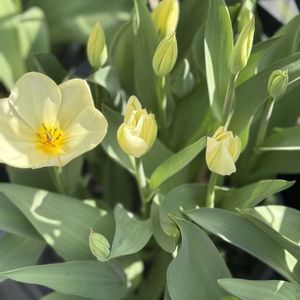 〜今日の庭〜 *チューリップ * 開花 お昼間そんなに頑張らなくても良いから 長く咲いてぇ…。 ①② 年始に 球根60%OFFセールで購入 白いチューリップ30球 クリーム色だね 一生懸命で可愛い❤︎ ③④ 個性的な 富山産チューリップ ホワイトバレー ⑤ 表(おもて)の花壇 昨年 植えた白いチューリップが 2年目の今年 ピンクで咲いた…。 左手に2つ蕾が有るけれど きっとピンクだ😆 ★ブラックチューリップ達の開花は もう少し先になりそう★