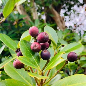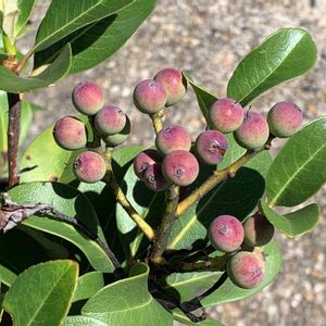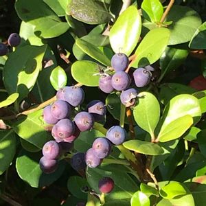海岸通りシャリンバイ濃紫色の実がもうこんなに大きくなっています! ブルーベリーに似た美味しそうな実ですが、可食部が少なく、毒はありませんが美味しくはないようです。 🏷青い実・紫の実