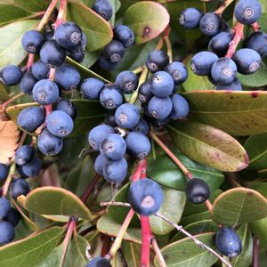 シャリンバイの実 隣り合わせの株の実色が違って見えます 実は緑色から黒紫色に変化するようです