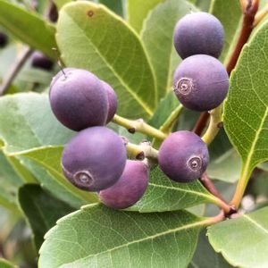指宿市 大牟礼 指宿港🌊にて 今朝 10/30 7時頃 🌅🤳 車輪梅の実⚫️🌿 バラ科の常緑低木 原産地は 日本、東アジア 花期:5〜6月 白い花が咲く🤍 秋に黒紫色の実を付ける😉 大気汚染や潮害に強いので高速道路や海岸に近い公園などにも植栽されています🤗