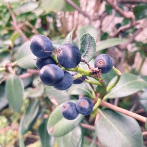 ご近所さんの生垣にシャリンバイの実が色づいていました🫐 じっくりと見たのは初めてで、新鮮でした😊💞🎶 何気ないものに心を動かされるのは秋のせい❓ それともお年のせい❓笑笑