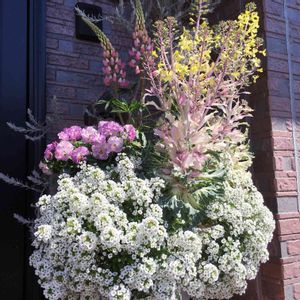 おはようございます(*´∀`)♪💕 玄関の寄せ集めの寄せ植え…(#^.^#)💦 葉牡丹ちゃんも背を伸ばし 可愛いお花で頑張ってるけど… モコモコ元気なスイートアリッサムちゃんに 圧倒されています ルピナスちゃんは二番花が色づき始めました バランスおかしいけど…みんな元気です🎶😋💘 今日も一日頑張りましょう٩( ᐛ )و✨✨