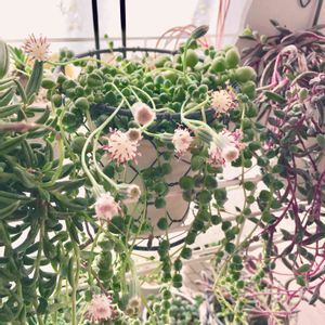 今日のお花 グリーンネックレス うちにもありました❣️ ネックレス育てるの苦手なんですけど… 以前ikuraさんのコンクリート鉢に出会い すくすく育っています♡ 流石ですね!