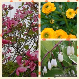*ハナミズキ *ラナンキュラスゴールドコイン*赤軸ナルコユリ みんなイキイキ〜 モリモリ 😆🍀🍀