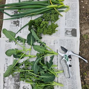 昨日の収穫 九条ネギ 茎ブロッコリー パセリ