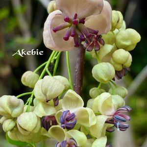 今日のお花*アケビ 今年4月に咲いた可愛いお花& 10月の若い実(*☻-☻*)💕 《スライドpic》 ①、②アケビ ふる里の山裾より。 ③ゴヨウアケビ 花友さんのお庭より。 ④ミツバアケビ 地元の里山より。 ⑤今月出会った若い実
