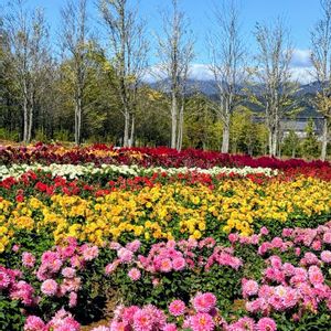 ひるがの高原牧歌の里では色とりどりのダリアが満開でした✨ 周りの木々やチャペルとのコラボが素敵です⛪️