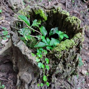 少し秋らしさを感じる様になって 少し早いかと思いながら出掛けた 久しぶりの森林公園🌲🌳🌲 お目当ての山野草には会えなかったけど 杉林の獣道をえっちらおっちら😅🌲 気持ち良く間引きされた杉林では 古くなった切株との出会い 何年も雨風にさらされ ポッカリと空いた切株に 新しい生命が宿っていた 私たち人間の手で伐り倒されても 自然はそれを受け入れ 其処に根を這って芽吹き 何の違和感も無く 当たり前の様に成長を始める 苔に覆われた切株も 木漏れ日に当たると ベルベットの様な光沢を放ち 高級な台座の様に 林の中で存在感を魅せている 杉林を仰ぎ見ると ちっぽけな存在である私が居る…🧍🏻 森林公園にて🌲