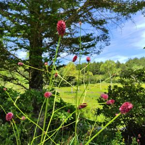 八月のお盆過ぎに行った 入笠山湿原 降り注ぐ太陽の陽射しは強いものの 標高1700メートル以上もある場所は 空も高く爽やかに澄み渡って 木陰は涼しい風が心地好い 一足早い初秋を感じ 出会う山野草たちに励まされながら 疲れを癒された楽しい時間 細長い松ぼっくりの様な花穂が可愛い😊♒ 少し小高い所では ピュンピュンと飛び跳ねているような勢いで群生 それでもよ〜く眺めてみると 青空に吸い込まれて行く様な 海老茶色のランタンにも見えて 見知らぬ土地へ夢を運んで行く様な ファンタジックな気持ちに😊🎈 清々しく拡がる湿原に 所々秋へのお色直しが始まっていた… 吾亦紅♒
