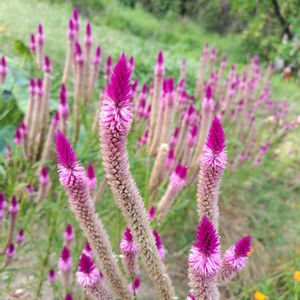 ロウソクに火を灯したような 野鶏頭♦️ 幾つもの群生を眺めていると 背高のっぽの兵隊さんが整列している様で お伽の国へ迷い込んだ気分に😄🎶 赤紫の頭に白とピンクの胸元がお洒落 夏の終わりと秋の訪れに 丁度ピッタリなお花…